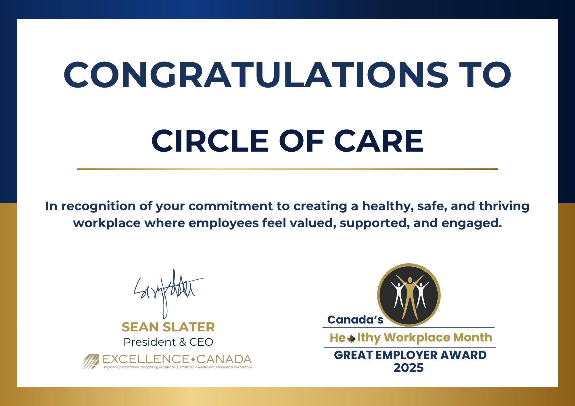 - Circle of Care Receives Canada’s Healthy Workplace Month – Great Employer 2025 Award
