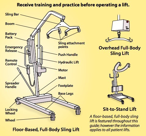 Mechanical lifts: Devices used to assist with transfers and movement of individuals who require support for mobility beyond the manual support provided by caregivers alone