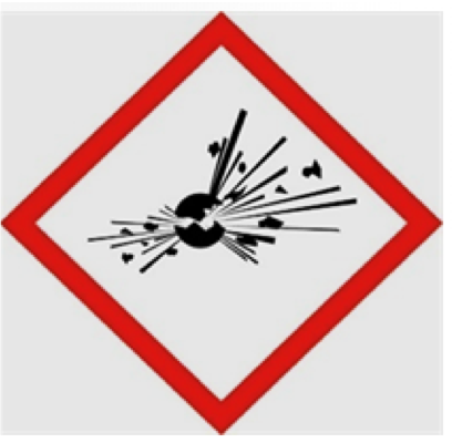 This symbol addresses products that can be self-reactive and may catch fire or become explosive if not handled in proper conditions. These products should only be handled by trained professionals. Products that feature this graphic may be sensitive to temperature or light changes as heat could cause it to explode or catch fire.