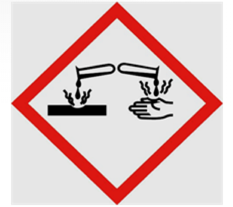 Any product that can chemically damage or destroy steel or aluminum is considered corrosive to metals. Products with this label may be corrosive to metals or skin. Damage can cause skin/eye irritation (which can be a reversible damaged), but can also cause destructive and irreversible damage. Therefore, extra caution is to be taken when handling these substances.